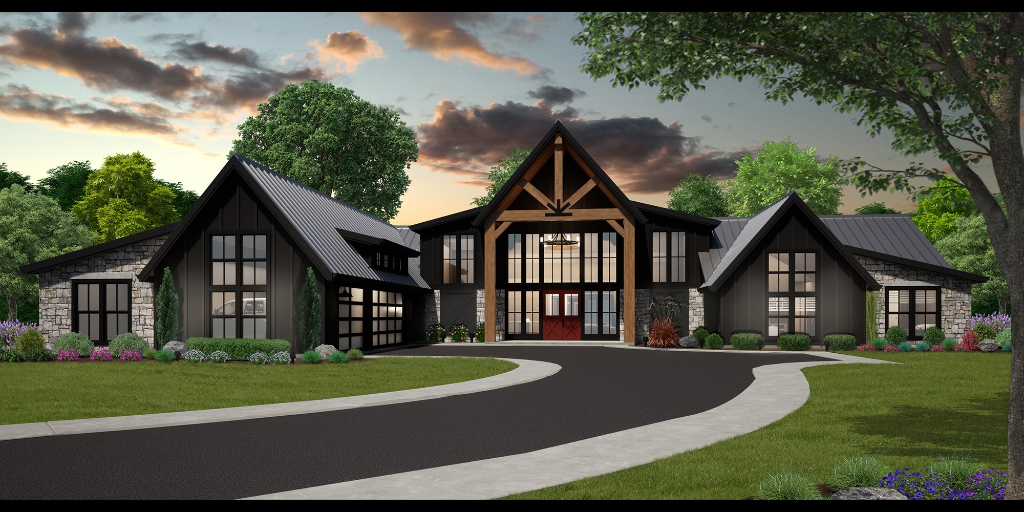 “Strong meaningful elements that share structural and aesthetic responsibilities” These are the things that separate today’s popular lodge style from the rest. This along with strong gable roofs and large scale trim and use of strong heavy natural materials and accents identify Lodge House Plans.”