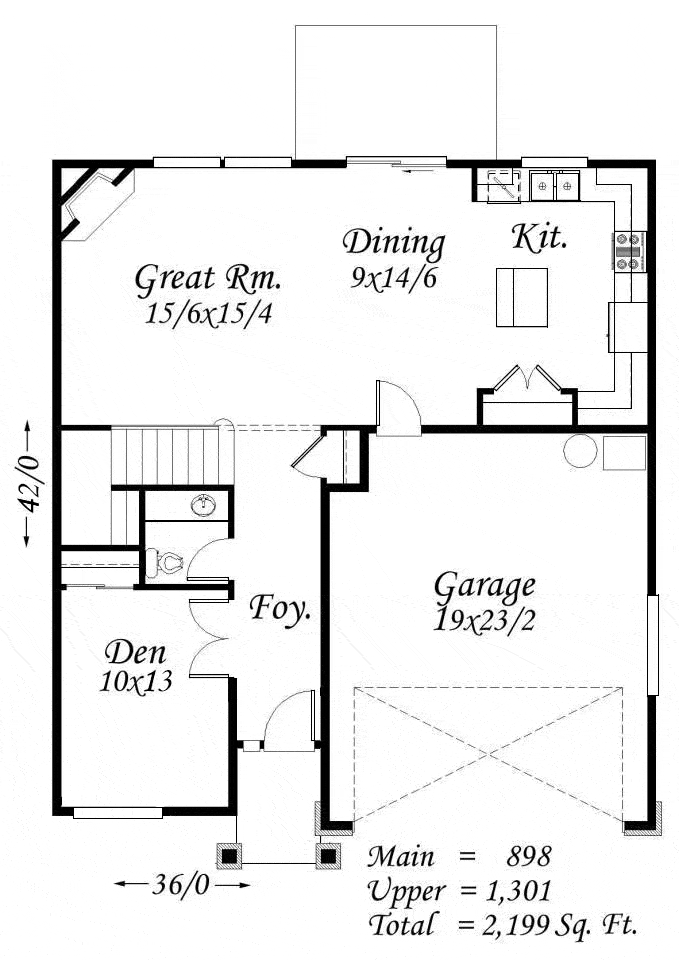 Bedrooms:4Bathrooms:3Cars:2Primary:Upper FloorWidth:36 ftDepth:42 ftFloors:2Sq Ft:2,199 -