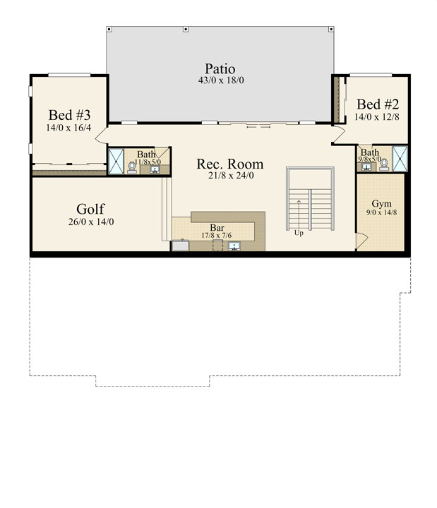 Downstairs, Epoch Modern offers an entire floor dedicated to leisure. Two private bedroom suites make it perfect for guests or older children. Furthermore, a large recreation room opens to the patio and invites games or movie nights. A full wet bar makes entertaining effortless. Most impressively, a dedicated golf simulator room gives this plan a unique and luxurious amenity.