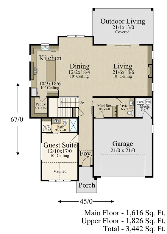 The main floor offers both privacy and openness. At the front, a vaulted guest suite creates a comfortable retreat for extended family or long-term visitors. Moreover, the attached bathroom and vaulted ceiling give it a touch of independence and luxury.