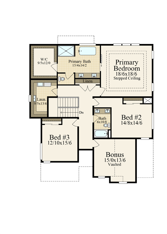The bonus room is one of the highlights. With its vaulted ceiling, it can transform into almost anything. For example, it can be a media lounge, an art studio, a gym, or a playroom. Families change over time, and this flexible room changes with them.