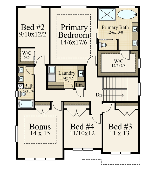 The second floor has 1,683 square feet and provides privacy for the family. The primary suite includes a large bedroom, dual sinks, a soaking tub, and a walk-in shower. A roomy closet connects to the laundry room, making chores quicker. This detail shows how the plan saves time in daily life.