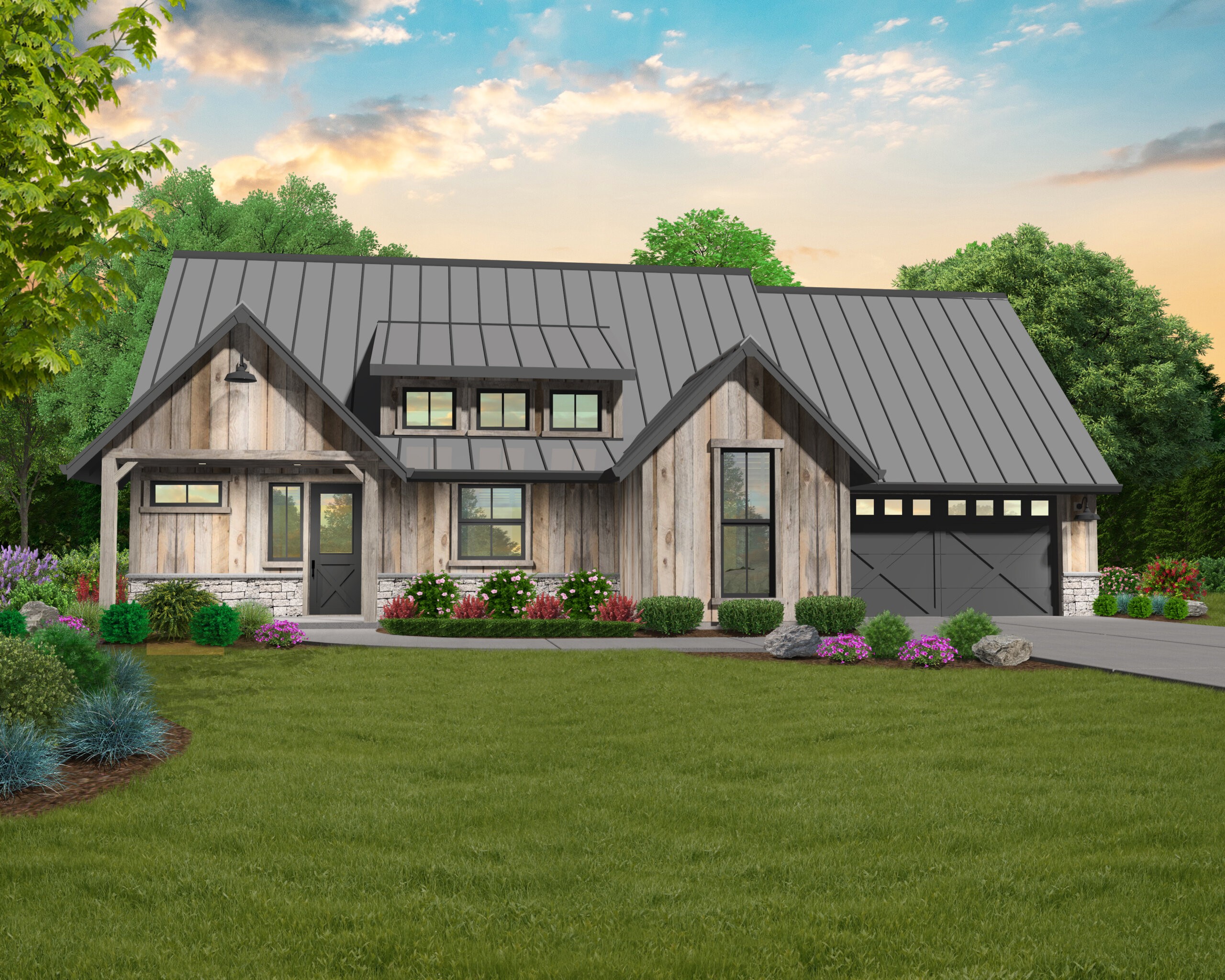 Your large truck will fit in the 27 foot deep oversized two car garage as well. This is a small farmhouse design that works very well as a primary residence, vacation home, ADU or as a homestead. There is so much value here for the construction dollar. The trend toward lower square footages with flexibility and high quality finishes is here to stay and this perfect little farmhouse design is sure to please a wide variety of homeowners. Our home design portfolio boasts many versions of this basic house plan so be sure to check out all the options. If you want a perfect little farmhouse look no further. You are home.