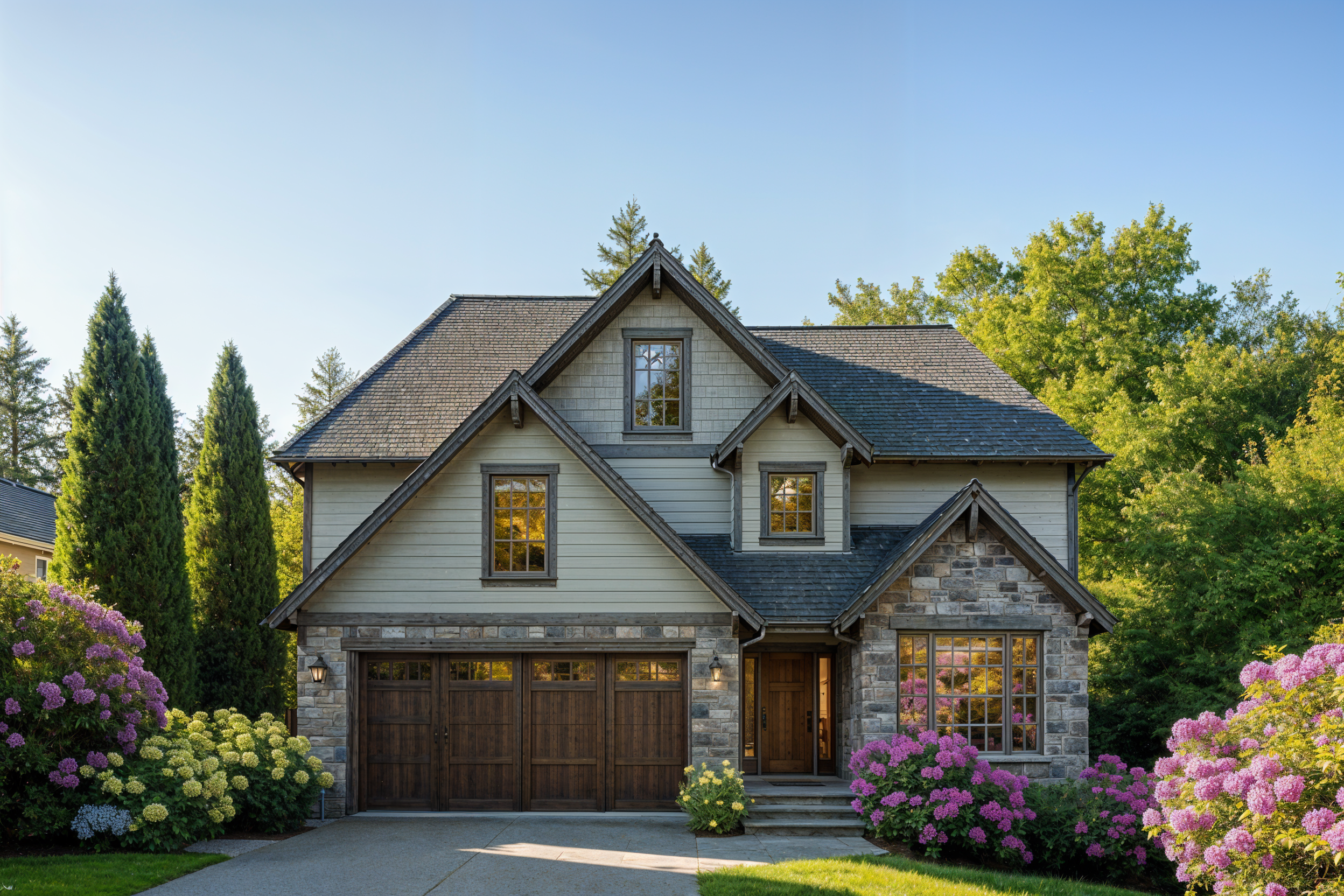 The Rosewood exterior speaks to a love of craftsmanship. Stone, wood, and steep rooflines come together in perfect balance. From the front door to the upper dormer windows, each detail feels handcrafted and intentional.