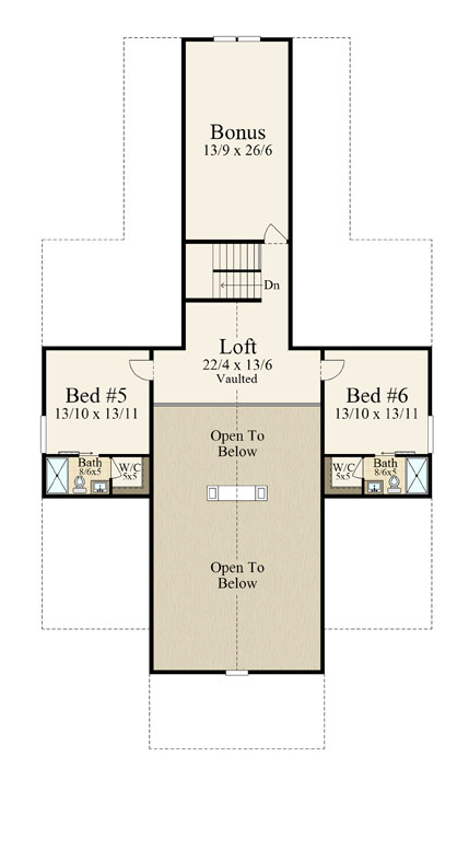 The second floor adds versatility with a vaulted loft that overlooks the great room. This bright space can serve as a study, play area, or secondary lounge. Two bedrooms flank the loft, each with a private bath. As a result, the upper floor is ideal for teenagers, visiting relatives, or long-term guests.