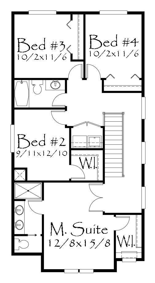 This beautiful and cost effective design is only 24 feet wide, and has a two car garage with 4 bedrooms! Clever design has created a very affordable house plan with tons of curb appeal and functionality. The wide open main floor works very well and has an amazing kitchen for a home of this size. Upstairs is a masterful arrangement of four total bedrooms, each with privacy, storage space and enough room for any family… We have versions of this plan with the Master Bedroom to the front OR the rear of the home. If you scroll to the bottom of this page you will find related plans that are all skinny four bedroom models with beautiful exteriors.