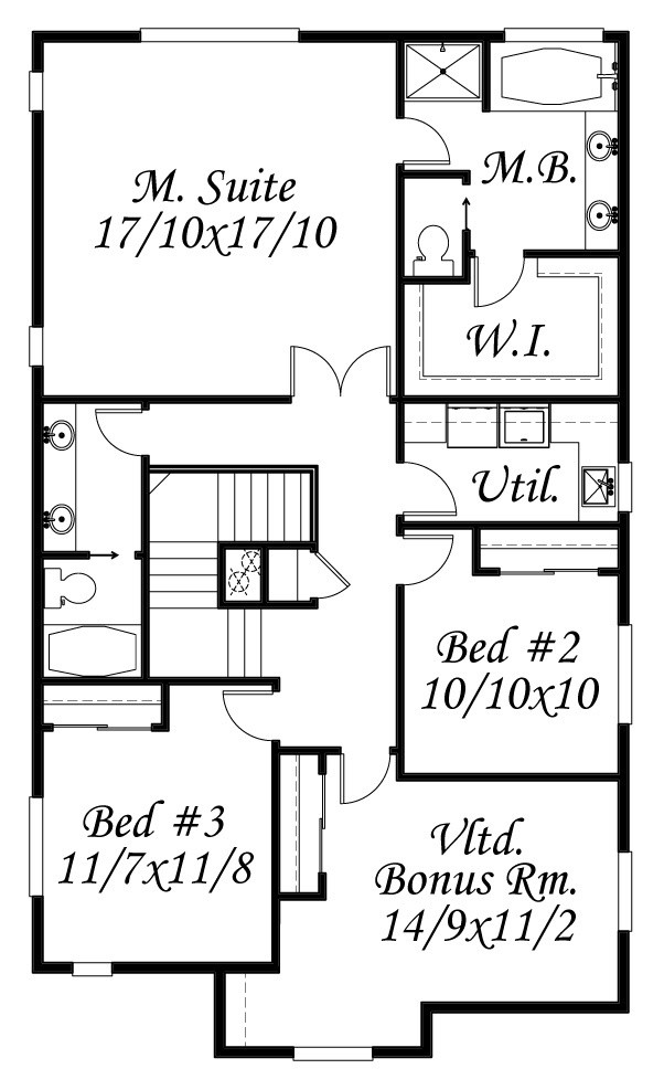 This French Country, Cottage style, “Phillips” Plan is a delightful cottage house well suited for a narrow lot. This home features a large open main floor plan with shared space and an easy modern floor plan. Upstairs there is a large master suite to the rear with two kids bedrooms and a forward faced bonus room. A great design for a narrow lot.