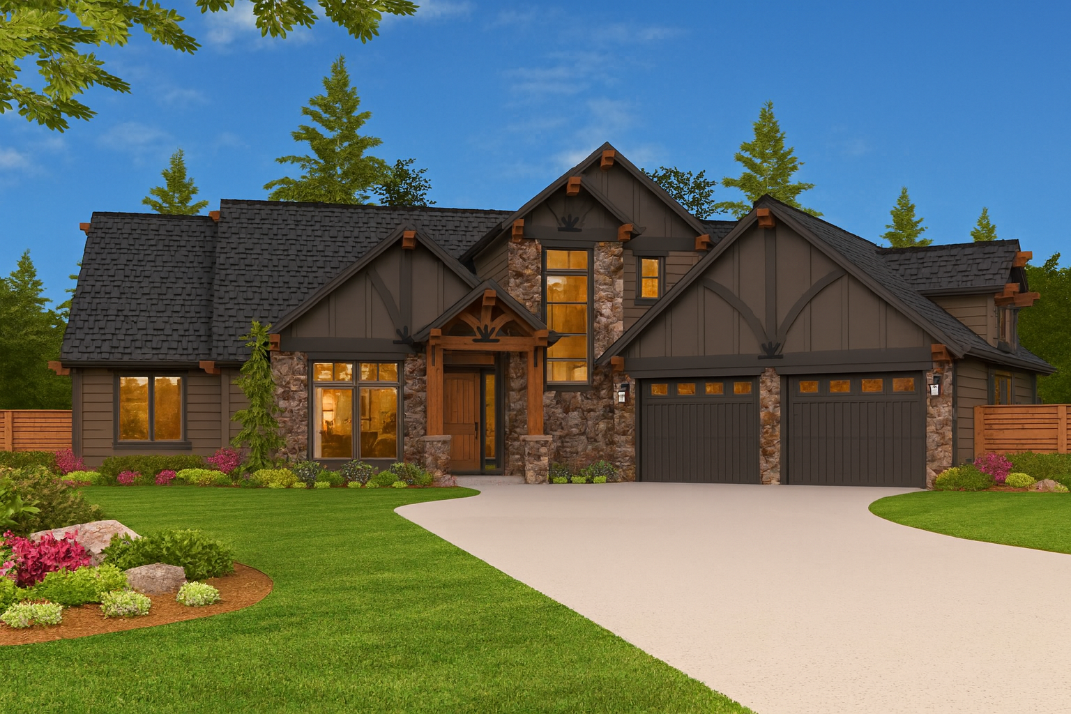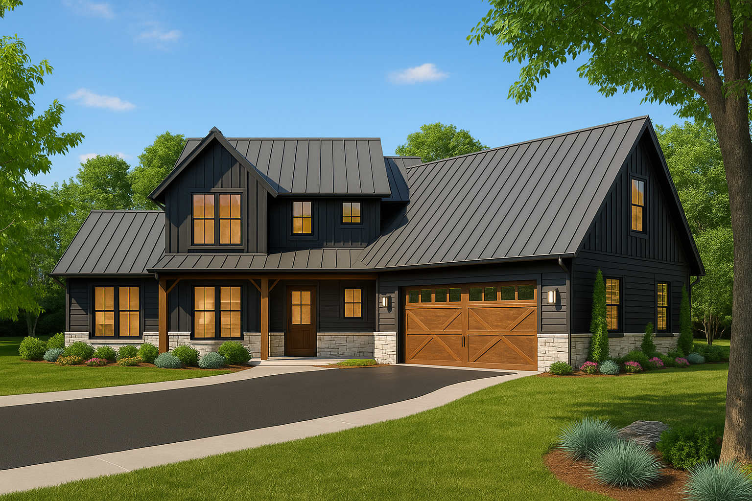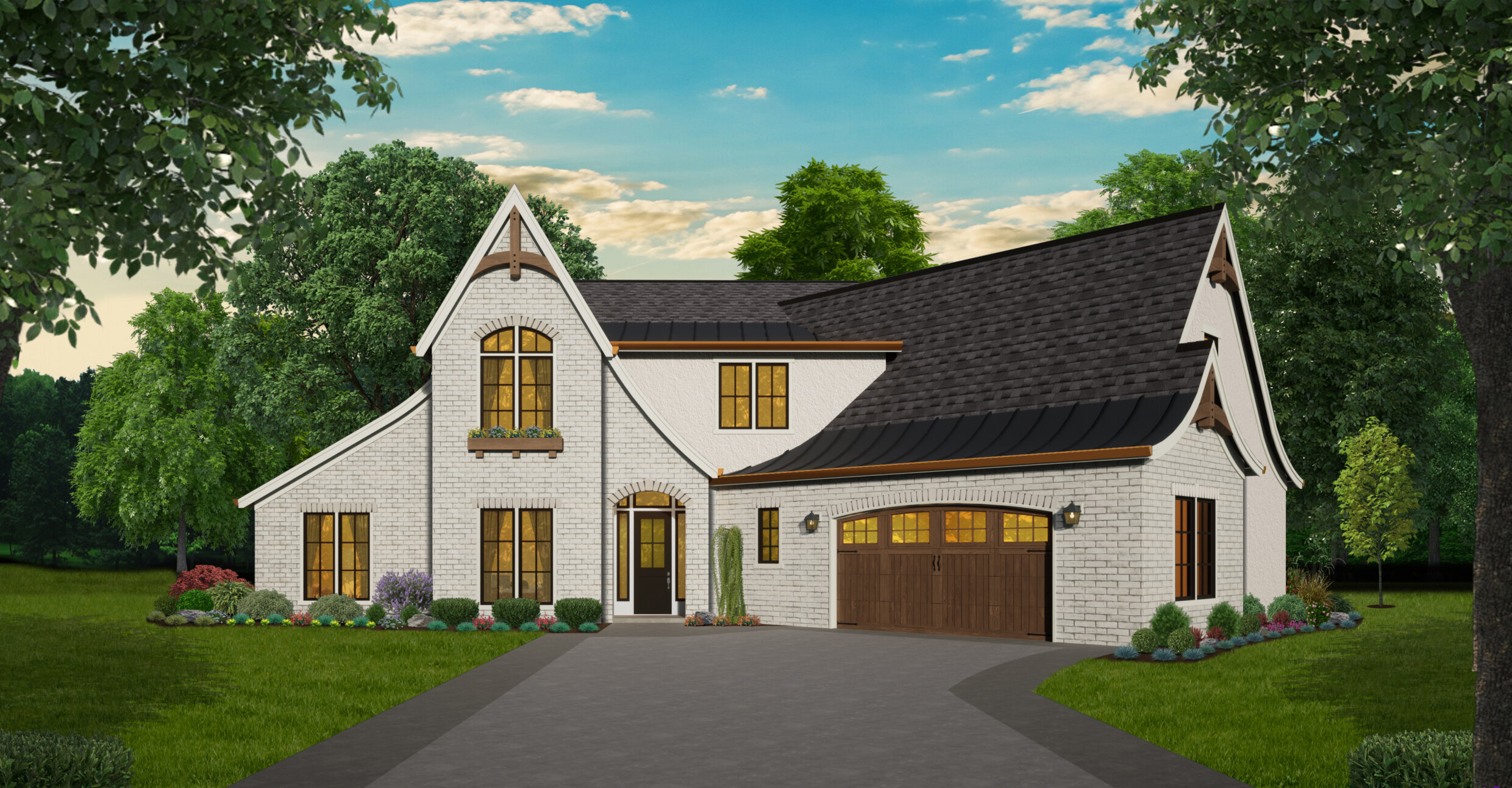 The Modern Storybook style allows Bramour to adapt beautifully to many locations. Its gentle rooflines, warm materials, and thoughtful proportions feel at home in suburban neighborhoods, wooded properties, and open acreage. Because the design avoids extreme trends, it will continue to feel fresh and relevant far into the future.
