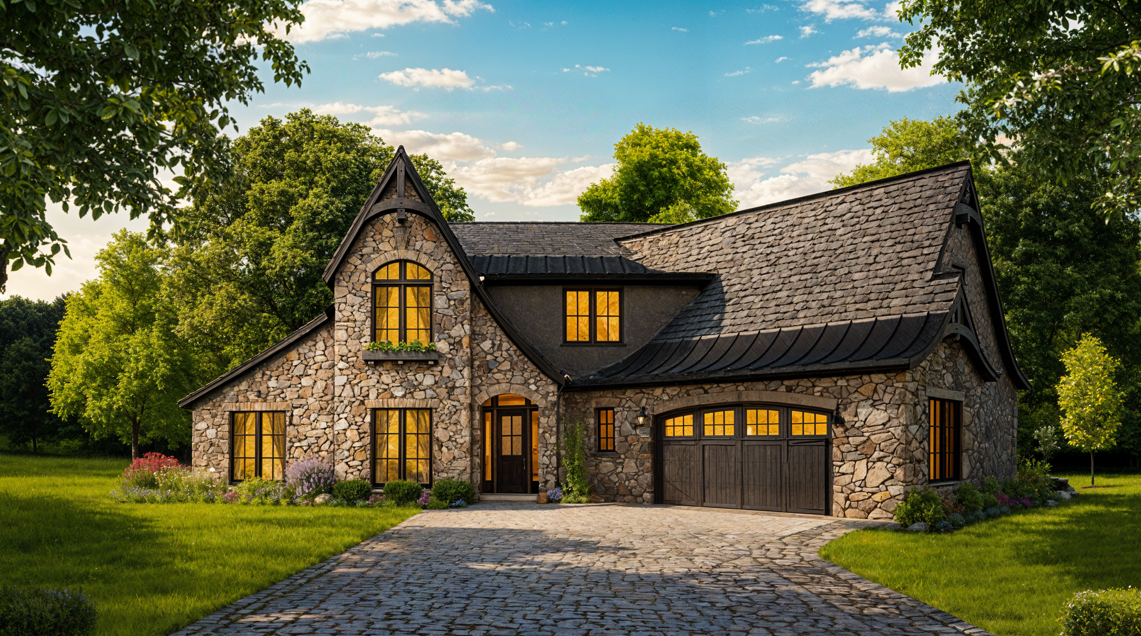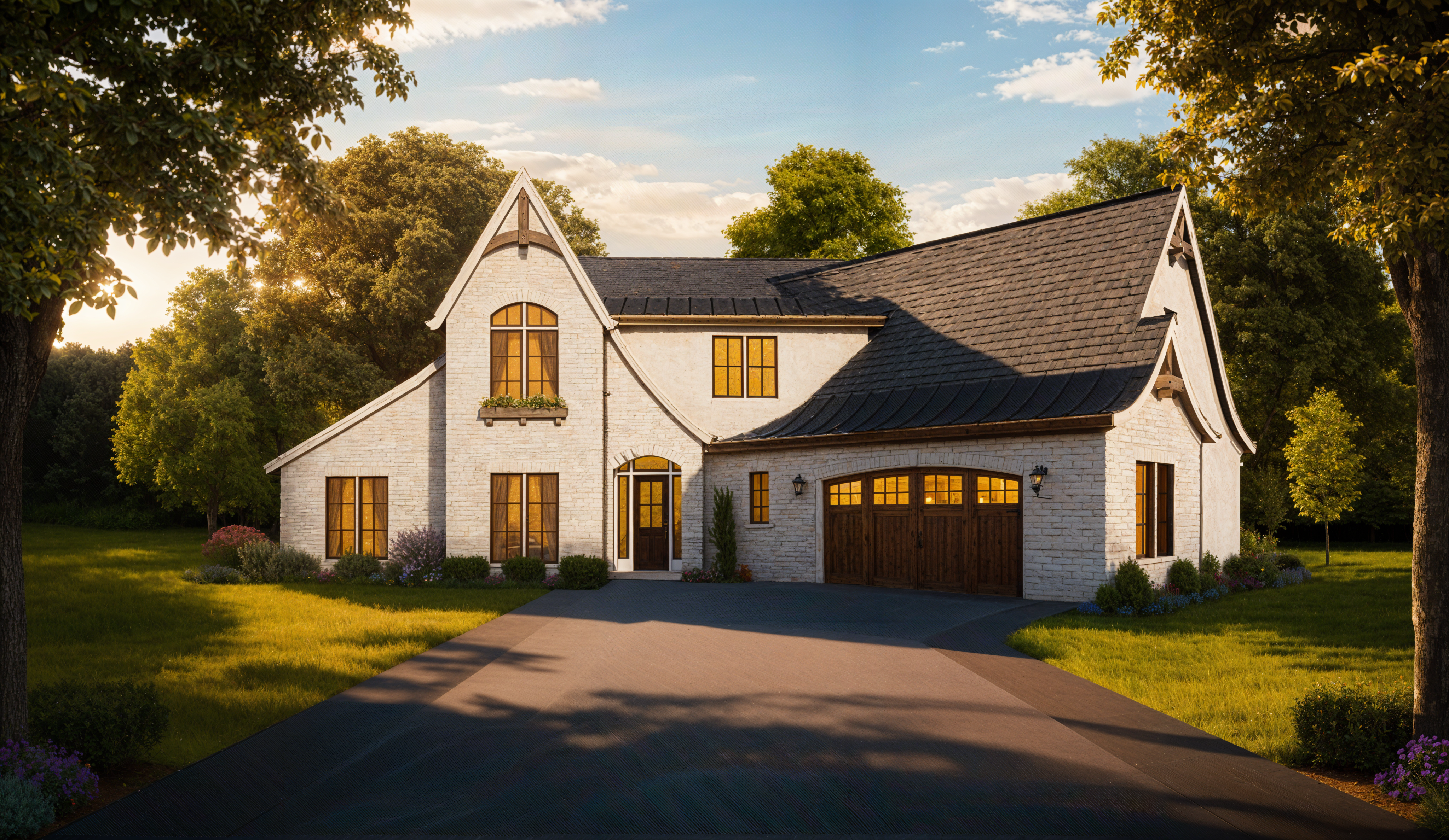 Bramour’s exterior sends a clear message the moment you approach. The soft gables and curved roof transitions create a silhouette filled with personality. These shapes add emotion without becoming overwhelming. Because the materials are carefully selected and thoughtfully combined, the home feels warm and timeless in any setting.
