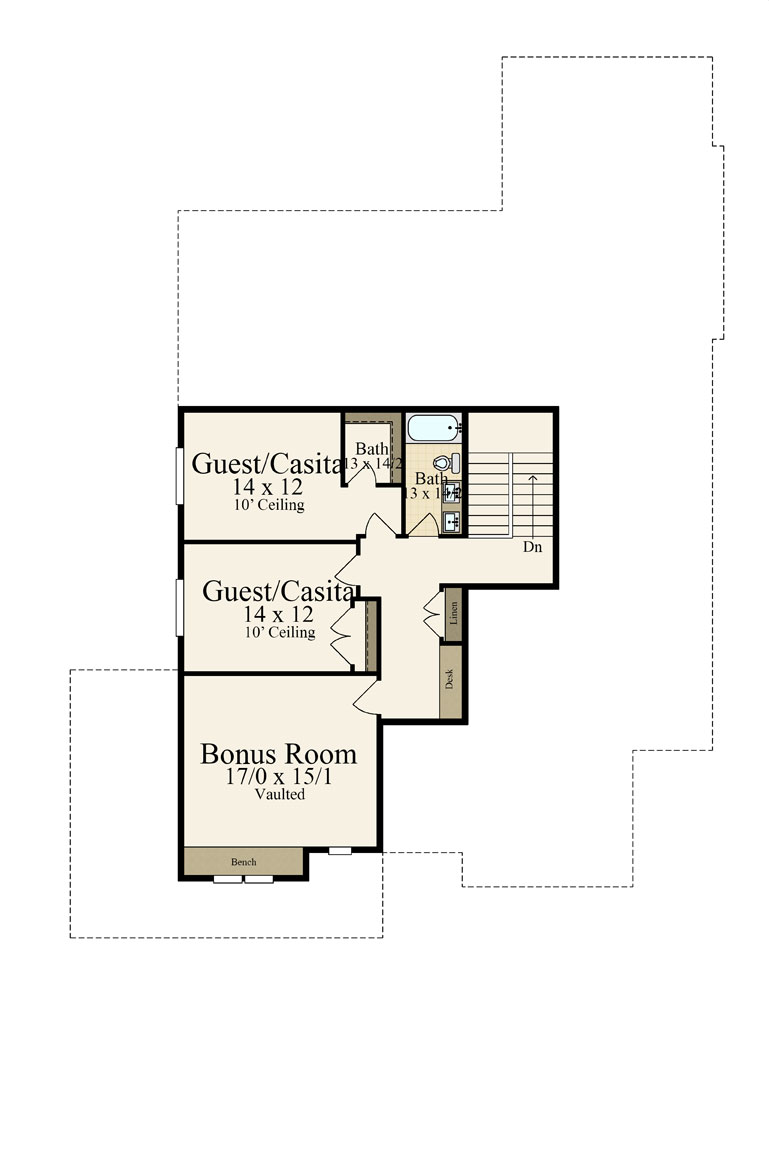 Upstairs, two more guest suites share  a private bath. A vaulted bonus room adds even more flexibility. It becomes a playroom, studio, or media lounge with ease. Therefore, everyone finds space to relax and belong.