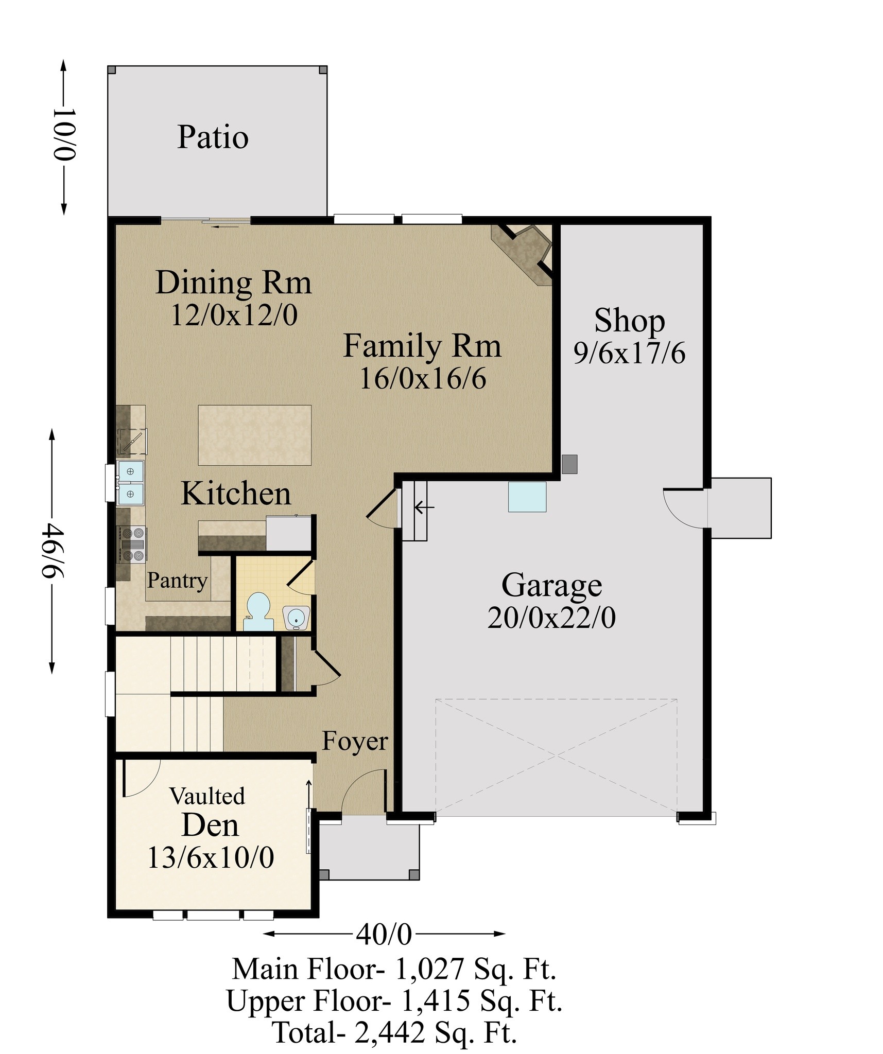 The spacious L shaped kitchen has a large island and a spacious open pantry at the rear. Looking out from the kitchen, you’ll see the patio (accessed by sliding door from the dining room), and the living room which comes complete with a corner fireplace. Rounding out the main floor is a sizable shop space at the rear of the two car garage.