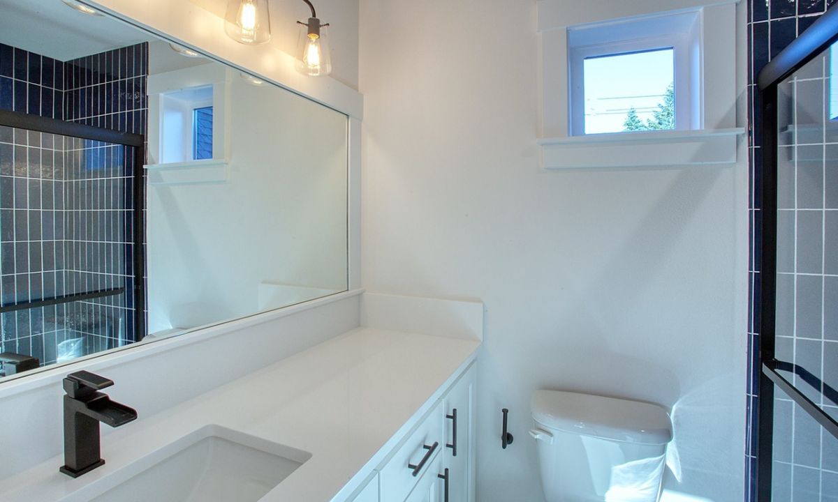 On the upper floor, you’ll find two additional full bedroom suites, each with their own attached bathroom and walk-in closet. In the center is a spacious loft that you could easily use an smaller upstairs sitting or play area. The loft looks out over living room to the striking window bank at the back of the home.