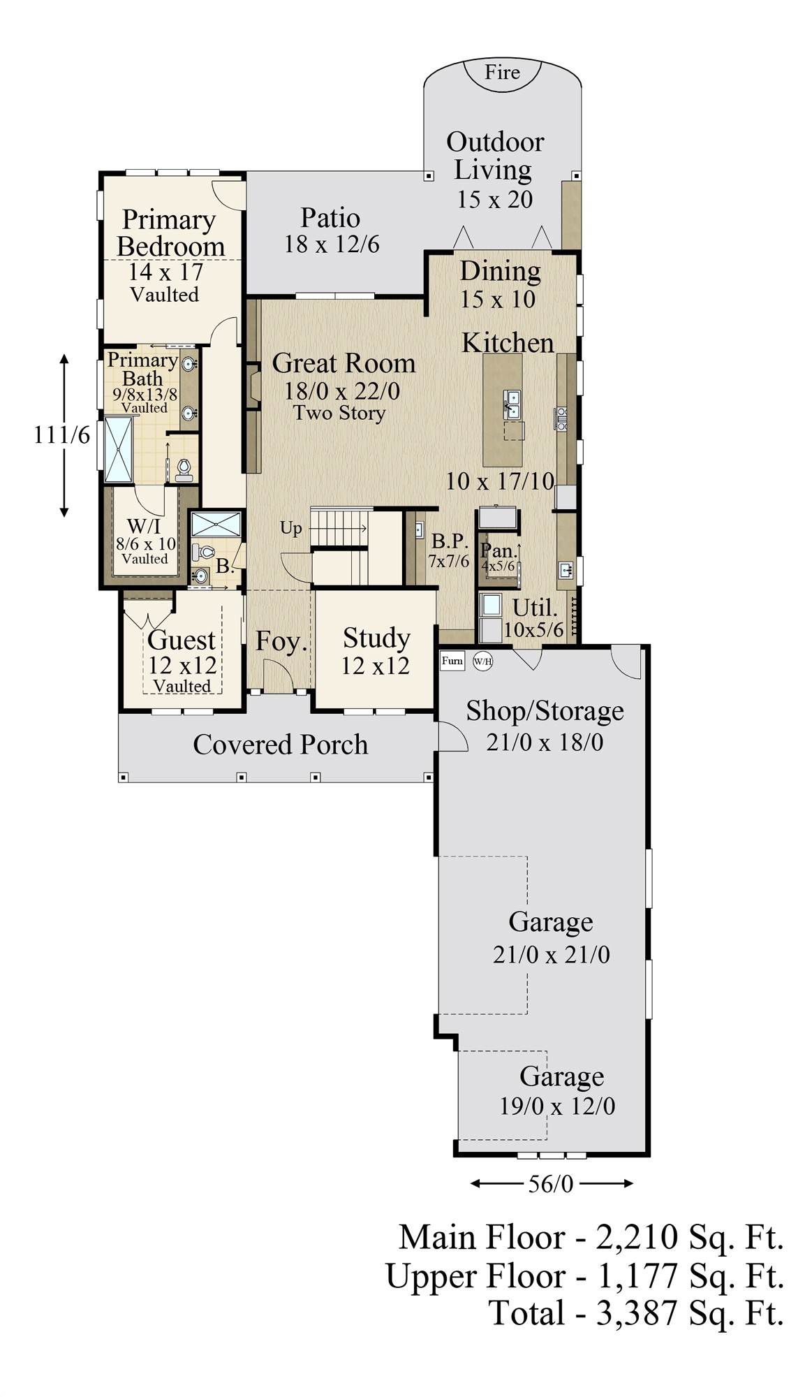 To begin our breakdown of what makes this home special, we begin before we even set foot in the home. A relaxing covered front porch sets the tone before you open the front door, as well as providing access to the shop/storage wing of the three car garage. Once inside, the foyer takes you past the study and the vaulted guest suite. Further down the hallway you’ll pass the first full bathroom that doubles to complete the front facing guest suite. The two story great room is next, where you’ll see the luxurious kitchen and dining room just to the right. A walk-in pantry AND a butler’s pantry compliment the kitchen, and the utility room connects the kitchen to the garage. Completing the main floor is the exquisite primary bedroom suite. Up for grabs here are vaulted ceilings throughout, view windows, patio access, and a bathroom that includes all the necessary goods.