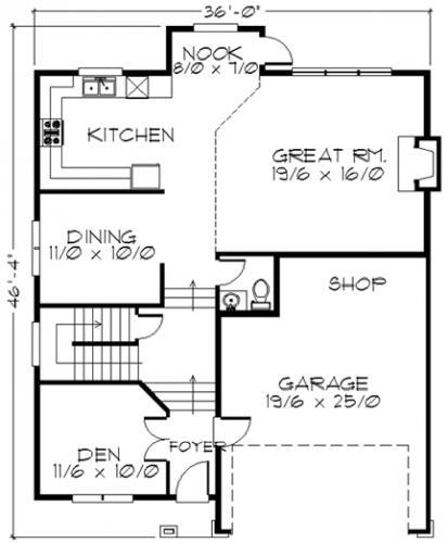 Here is a narrow lot home perfect for a down sloping lot. The stepped down levels here not only accommodate the down sloping lot but also create great volumed ceilings in the dining, kitchen and great rooms. There is a shop in the garage and a den at the front foyer. Upstairs are three bedrooms and a bonus room. The master suite is large and vaulted. This plan comes with two optional elevations, one is decidedly a shingle style and the other is craftsman. It would be hard to pack more in a package containing this much spacious living space. The plan comes in a two car or three car option.