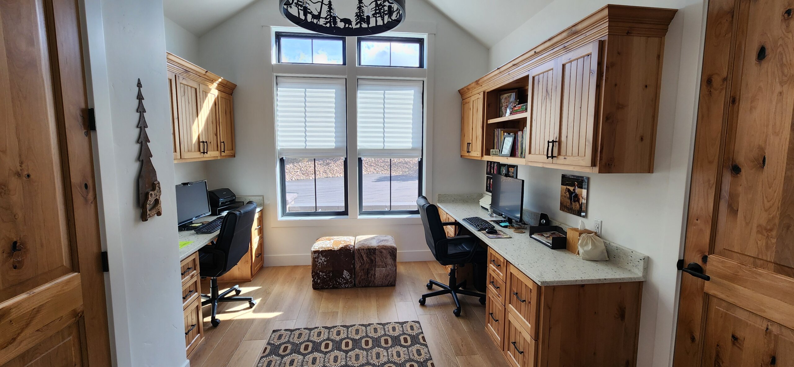 Braun’s flexibility is one reason it continues to be a best-selling modern rustic house plan. Near the entry, a vaulted flex room can serve as a home office, den, or creative studio. The space also works beautifully as a guest bedroom when needed.