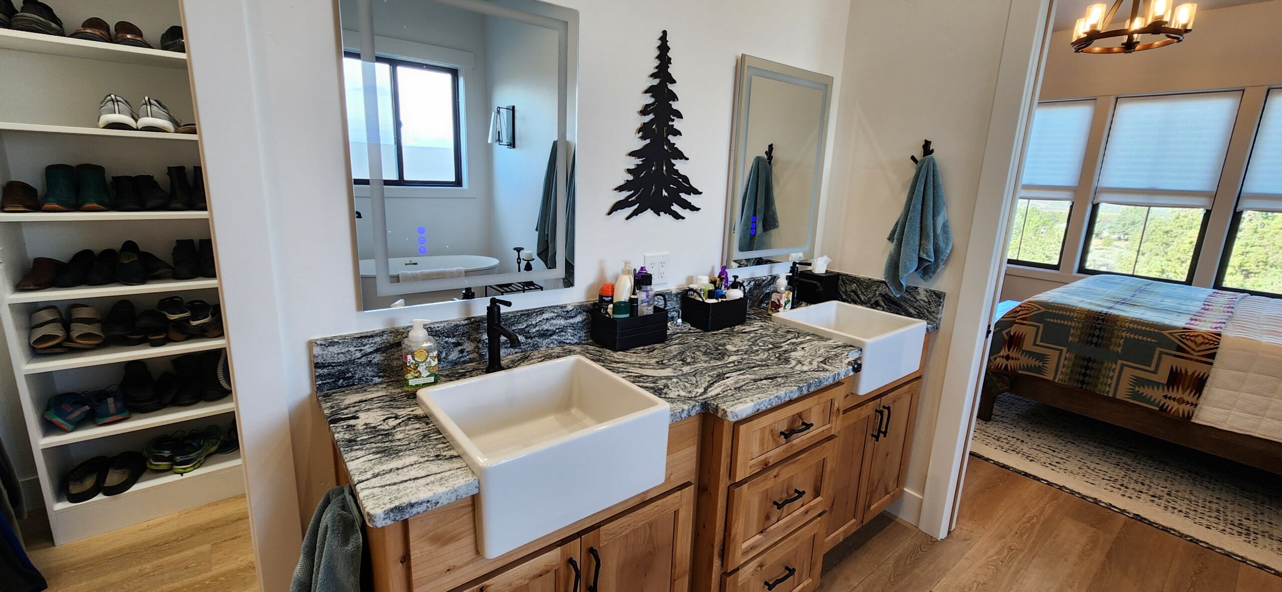 Because the patio is vaulted and protected, it’s perfect for year-round use. You can dine, entertain, or simply enjoy the peace of the outdoors. The design encourages you to live both indoors and outside — a signature of modern rustic architecture.
