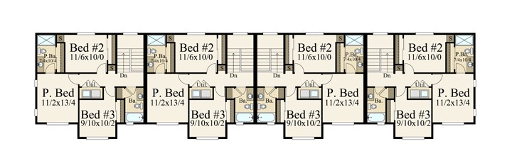 In our ever growing effort to expand the pool of stylish and undeniably delightful multiplex plans, we present to you this latest modern prairie style attached townhouse. With four classy homes all sharing the same floor plan, this will be a smash hit wherever you decide to build. The contemporary Prairie style exterior sets the perfect tone for what’s to come, and there is quite a bit!