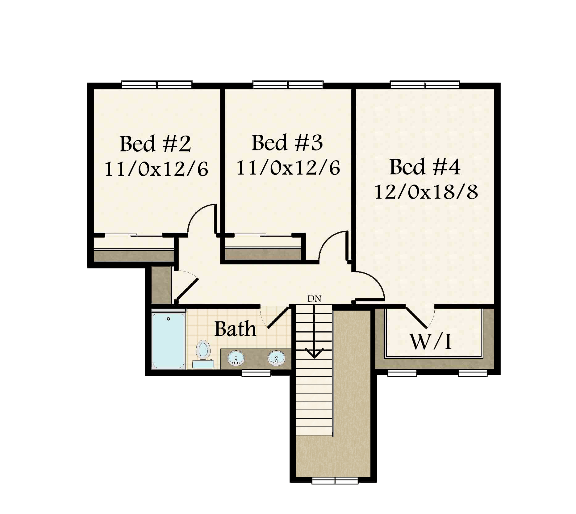 To the left of the great room lies the master suite, where you’ll find his and hers sinks, a large walk-in closet, and a private toilet. Upstairs are the three additional bedrooms, and the final bathroom, which also includes side by side sinks. The modern farmhouse is here to stay and we are thrilled to present you this house plan from our growing collection.