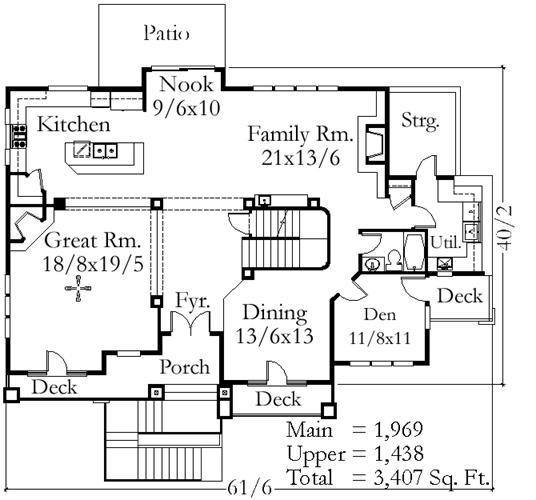 This is simply a blockbuster design for an uphill front view lot. The balanced and pleasing Prairie style is matched with the large comforatable and fully developed floor plan features. Pay close attention to the big great room with front facing deck and adjoining kitchen and dining room. Upstairs is a commancing master suite with the best view and all the luxury you would expect from a Mark Stewart Signature House Plan.