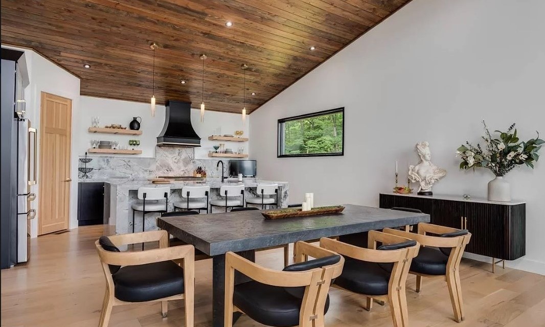 Upon entering, you are immediately struck by the soaring vaulted ceilings that create an unparalleled sense of openness and airiness. The open-concept design ensures that every space flows effortlessly into the next, while the abundance of glass walls and large windows allows natural light to flood the interior, highlighting the exquisite finishes and contemporary details.