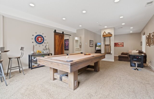 The finished lower floor adds incredible versatility. A large recreation room opens to a covered patio, offering a seamless indoor-outdoor connection. Whether you use it for movie nights, games, or a secondary living space, it adapts easily to your lifestyle.