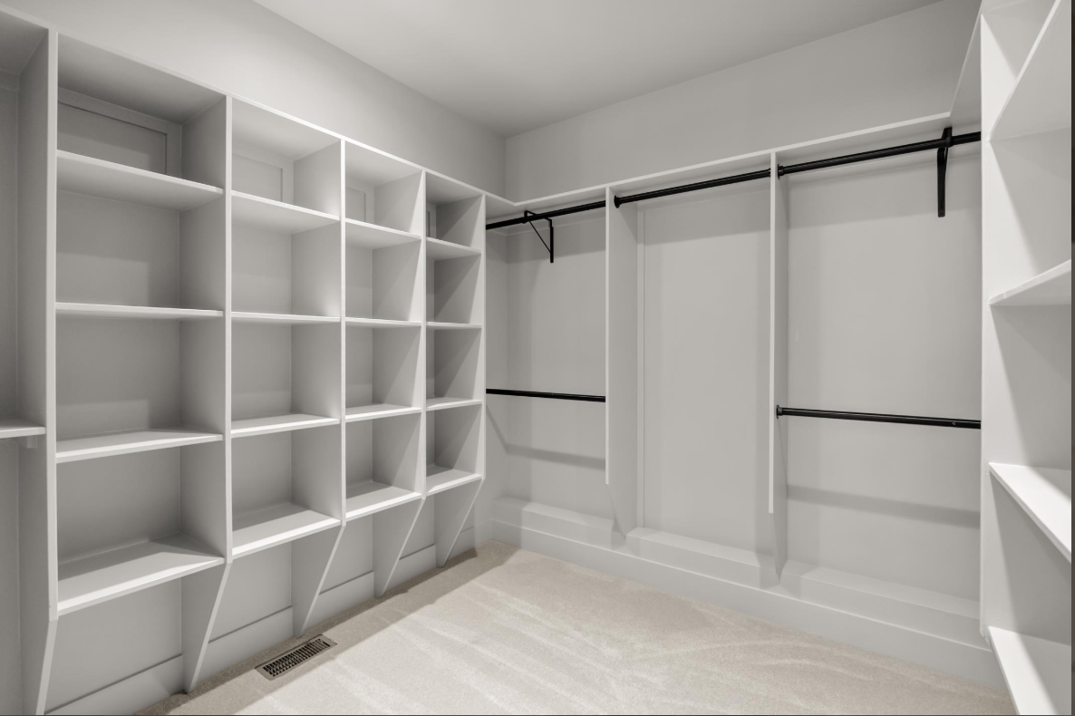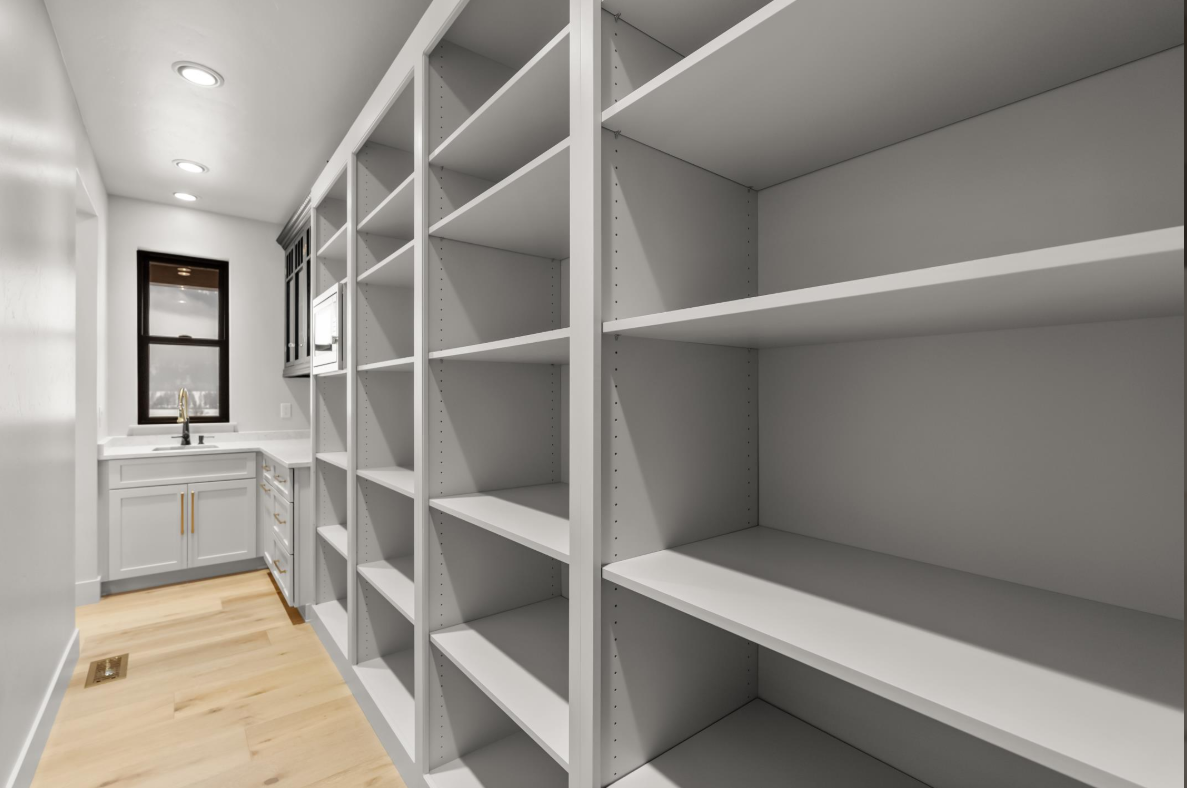 The kitchen has been designed with serious cooks and social gatherings in mind. A generous central island provides extra prep space and casual seating, making it the heart of the home. Surrounding counters and cabinets maximize storage, while the walk-in pantry keeps staples tucked away but close at hand.