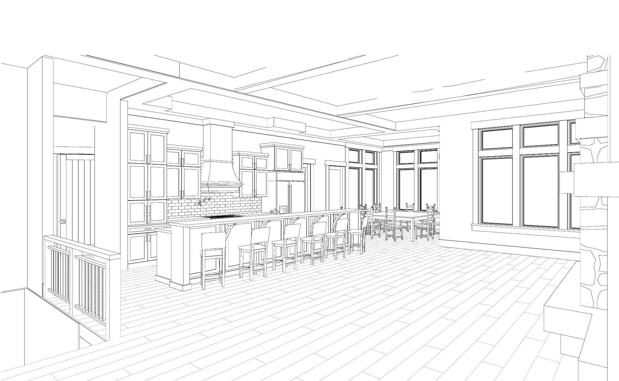 Adjacent to the great room is a spectacular covered deck, perfect for year-round entertaining, outdoor dining, or simply relaxing in nature’s beauty. With seamless flow from the living room to the deck, this design is ideal for those who love to entertain or appreciate an immersive natural experience.