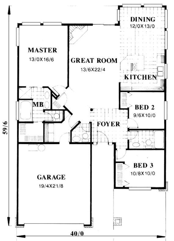 This is certainly one of the best laid out floor plans in the 1500 sq. foot category that you will find. We have experienced tremendous sales of this plan from starter home families and it has been immensely popular among empty nesters. We have designed this home specifically with the empty nester in mind. Notice the large great room at the center of the home surrounded by the master suite, gourmet kitchen, and dining room. At 40 feet wide this home will fit almost anywhere.