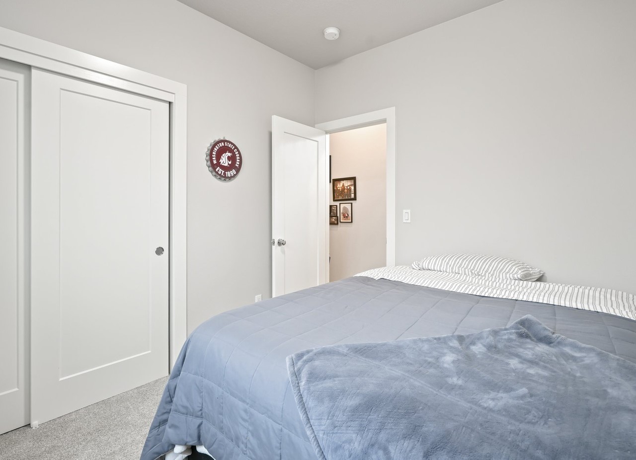 Two additional bedrooms at the rear of the upper floor are generously sized, each with its own closet and access to a shared full bathroom off the hall. Whether used as bedrooms, guest quarters, or flexible office/workspace, these rooms make Arrow a great fit for families, roommates, remote workers, or anyone seeking extra versatility in a small footprint.