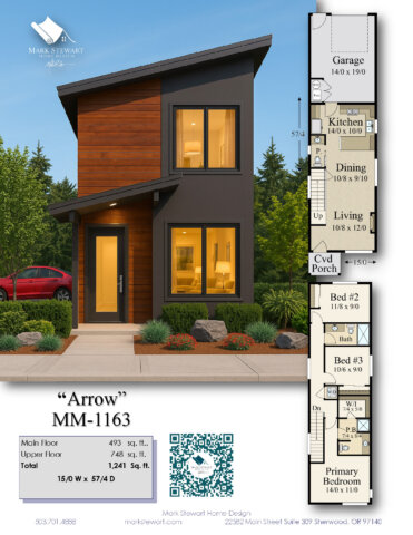 Arrow (MM-1163) is a model of what small two-story modern house plans should offer: excellent value, beautiful design, practical livability, and construction-friendly simplicity. Whether you’re building in a tight urban lot or a compact suburban development, this plan adapts effortlessly while maintaining style and integrity.