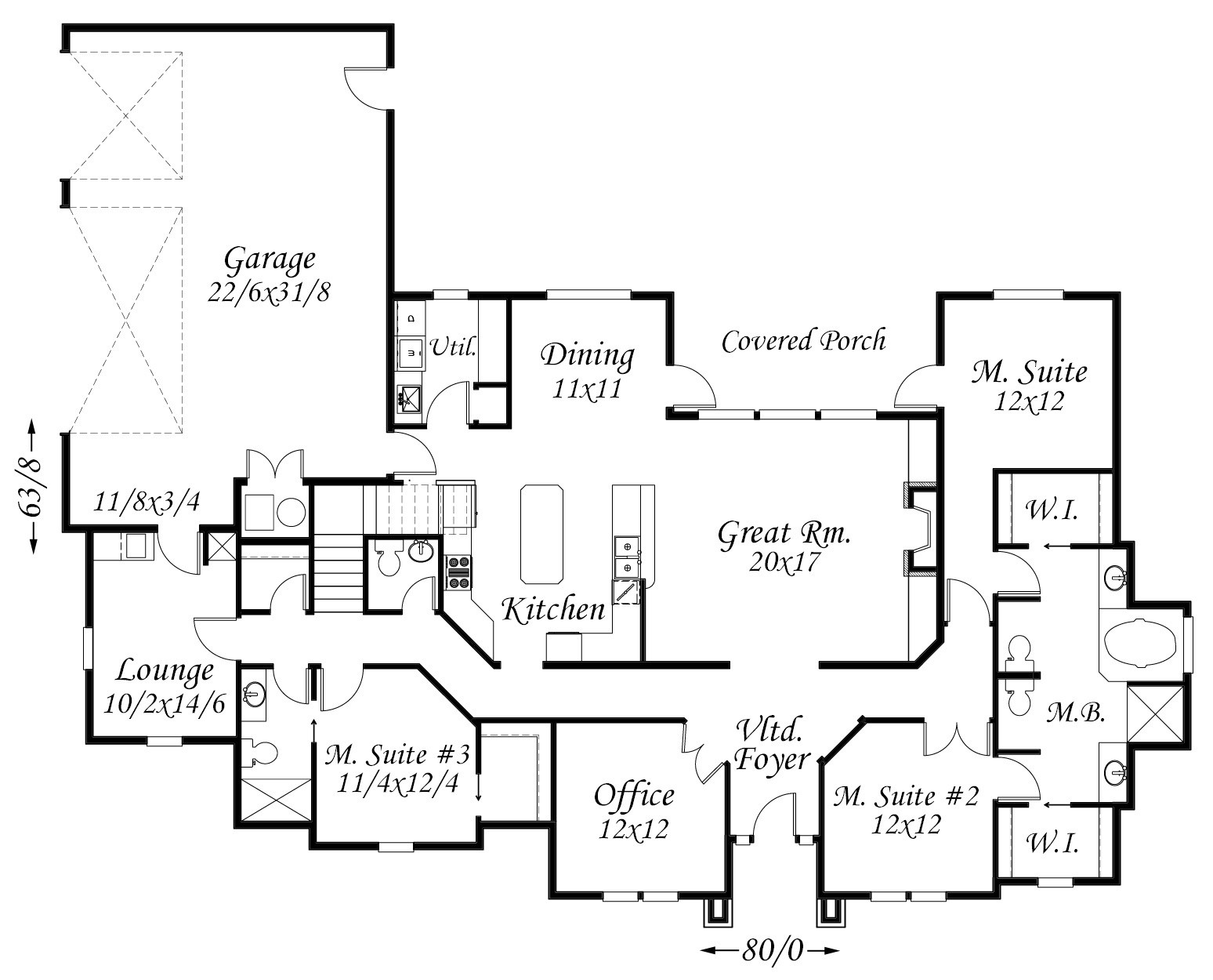 This Transitional, French Country, and Old World European Style, the Lady’s Nest is a beautiful European inspired house plan that has three complete master suites! Everyone under one roof, with room to spare! A private office and a separate lounge compliment the Great Room with island kitchen and dining room at the rear. A large covered porch is also part of this design at the rear of the home. Upstairs is a complete guest suite with a large storage room.
