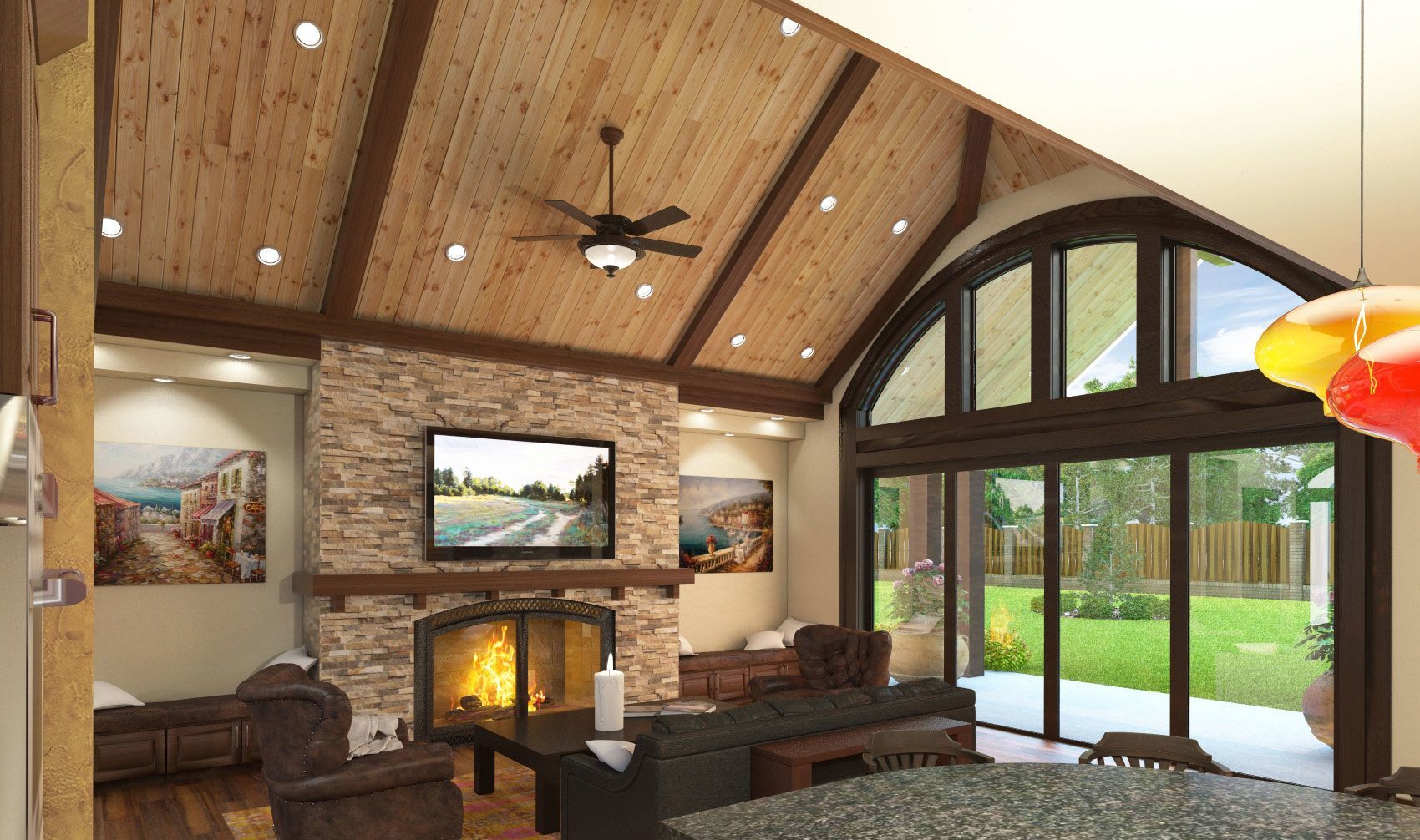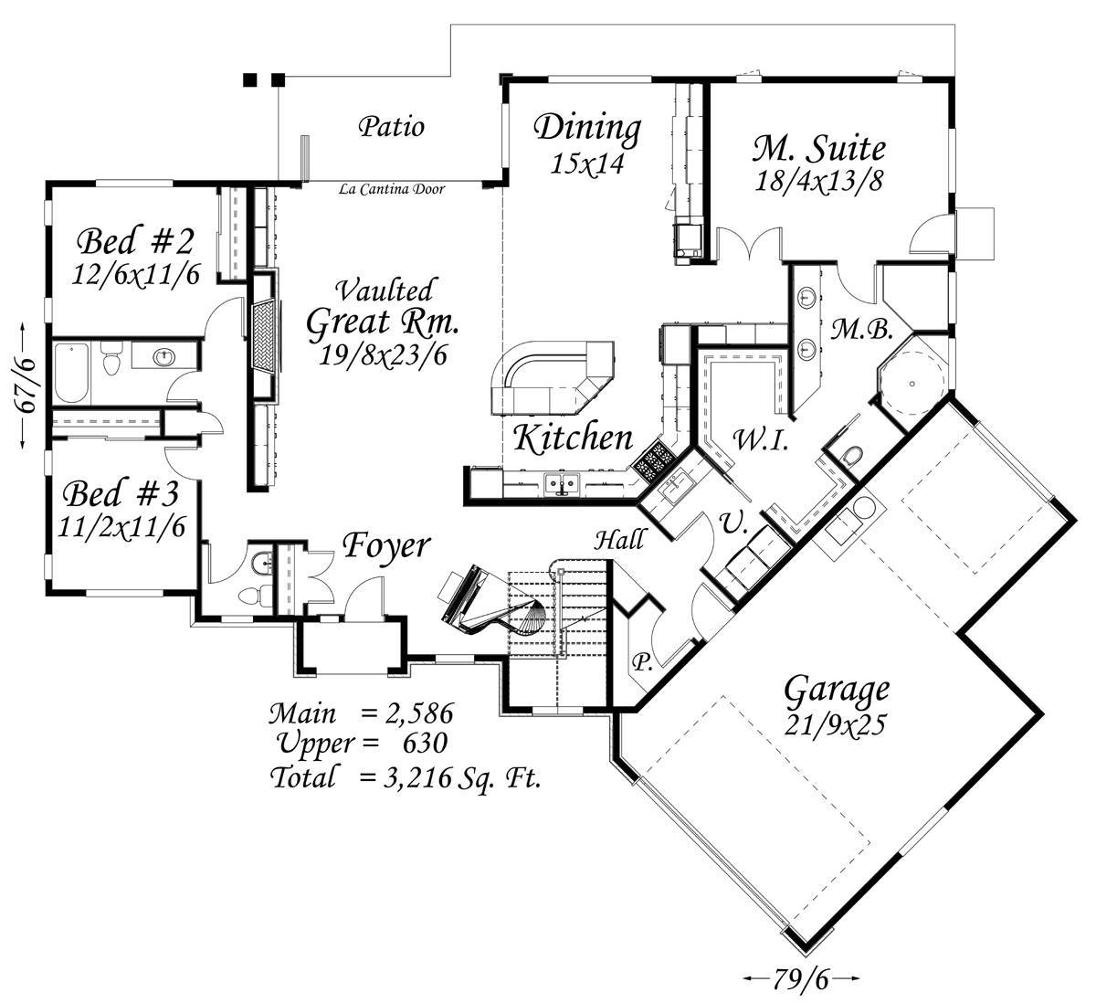 A very thoughtful European “Wine Country” design perfect for the empty nester family. The beautiful and strong exterior leads to a very open, dramatic, yet intimate, main floor. The master suite is thoughtfully placed at the rear with the guest bedrooms on the opposite side. The dramatic great room opens with a lift and slide wall system out to a covered outdoor room off of the great room. The gourmet kitchen also works very well as the social hub of the home. Upstairs is a home theater and card room with a large storage space. The tandem three car garage has a rear facing overhead door for ultimate convenience. This home design is a totally custom home that includes a full interior design package as well as multiple color renderings and if needed the full REVIT file. The complete 3D spacial model of the home is included with REVIT purchase. For more homes or to contact Mark Stewart, visit markstewart.com