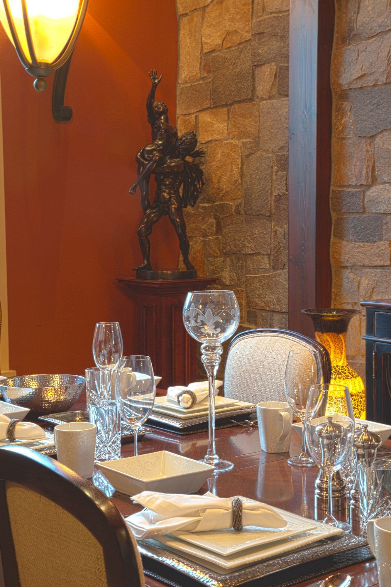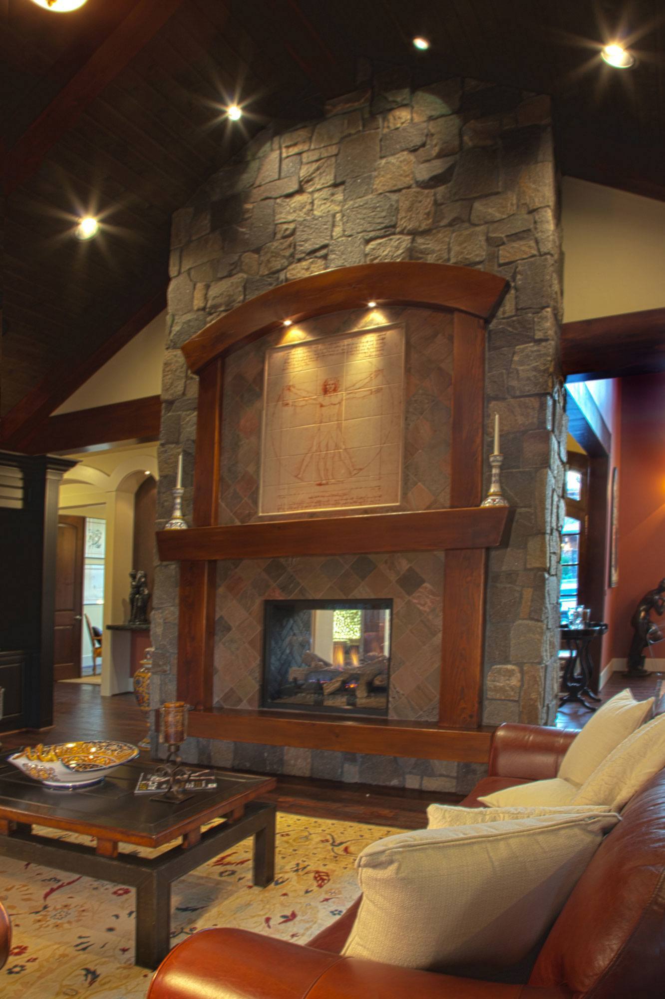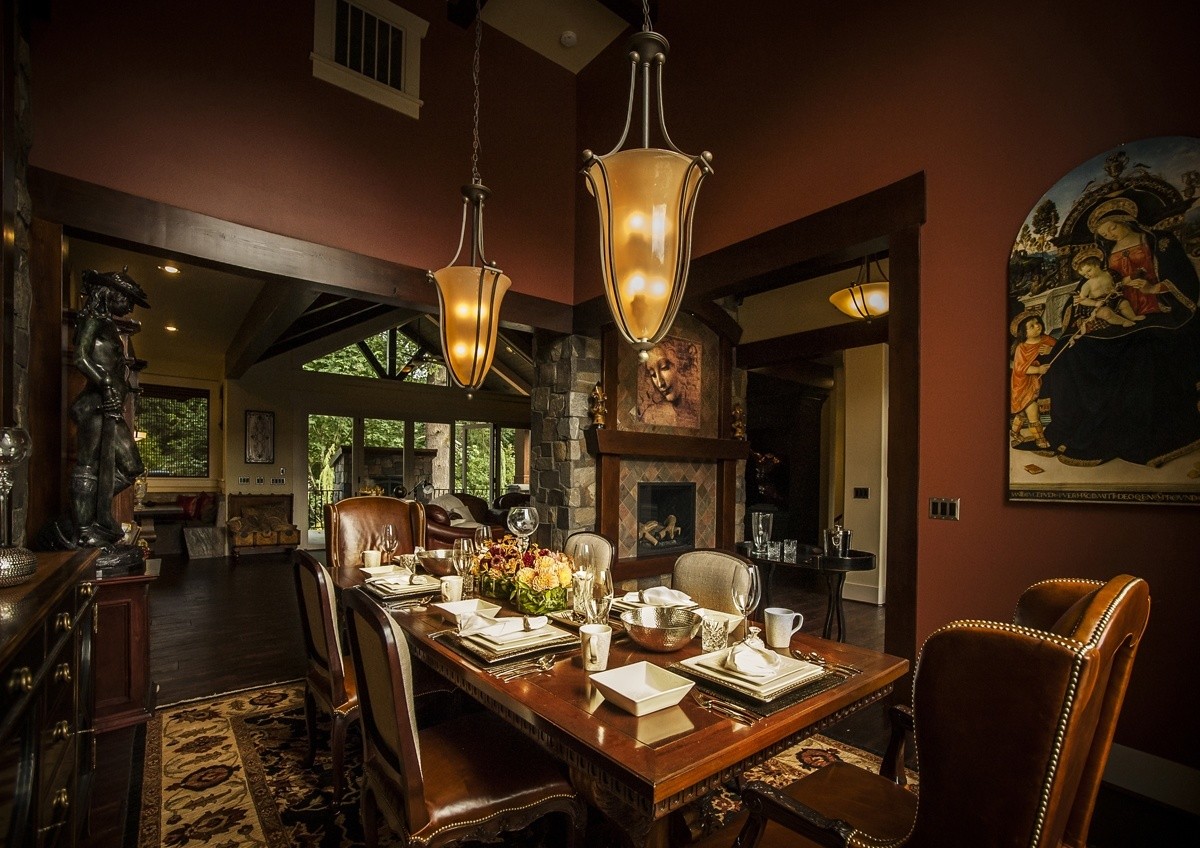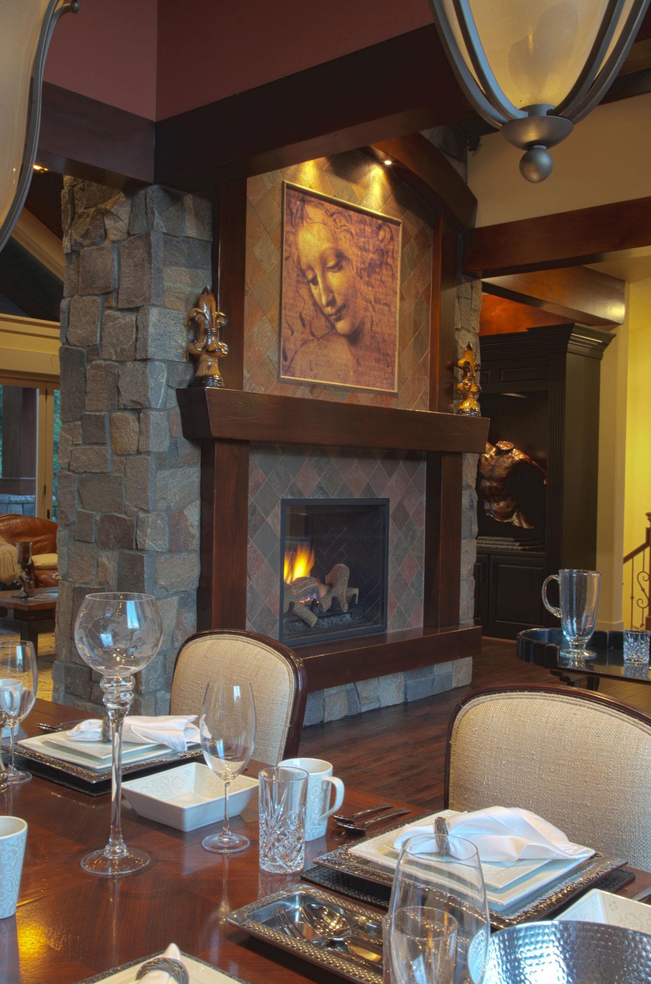 The Da Vinci house was created for the Street of Dreams in 2012. Hutchinson Construction and Mark Stewart teamed up to produce this one-of-a-kind custom masterpiece. The strong and rich exterior with its dancing rooflines and arched gables leads to a graceful foyer near the voluminous dining room and two way great room fireplace. A private powder room is also nearby. Once inside the through-vault in the great room you are taken through an innovative space that leads to a lift and slide door system out to a covered outdoor living space just behind the great room. A built-in nook on the way to the kitchen is ultra-convenient. The gourmet kitchen has everything you could want, even including a hidden pantry behind cabinet doors. Down the art niche lined hallway is a comfortable den and main floor master bedroom suite, complete with a very generous deck and master bath suite. Pass down the stair corridor and find three total bedroom suites, a craft room, and a beautifully proportioned rec room. Nothing has been spared in this elegant yet comfortable home. For more information or to contact Mark Stewart, visit markstewart.com