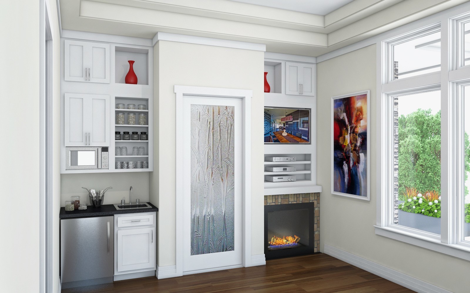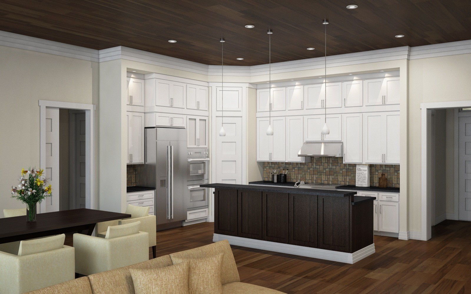 This charming one story design, wrapped in a clean, modern exterior, is FULL of natural light with 12 foot ceilings, transom windows, and a unique and exciting Casita up front. The 12 foot window filled Great Room has a large built in entertainment center with large fireplace. The master suite is ample and also features a 12 foot ceiling. Beautiful and graceful lines inside and out insure an easy flow and lifestyle in this single story home.