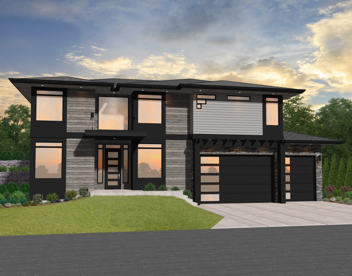 Entering into the main floor of this modern home design, you’ll see the theme of open living spaces continued, with a gourmet L-shaped kitchen looking out over the great room, dining nook, and out to the patio. In addition the dining nook, you’ll also have a formal dining room, accessed via a small butler pantry off of the kitchen or via the foyer. The kitchen boasts a walk in pantry around the corner so food storage is never a worry. The den near the foyer provides a calm workspace and benefits from plenty of natural light through the front of the home. A three car garage means you’ll have plenty of room for everyone’s vehicle as well as ample space for storage.