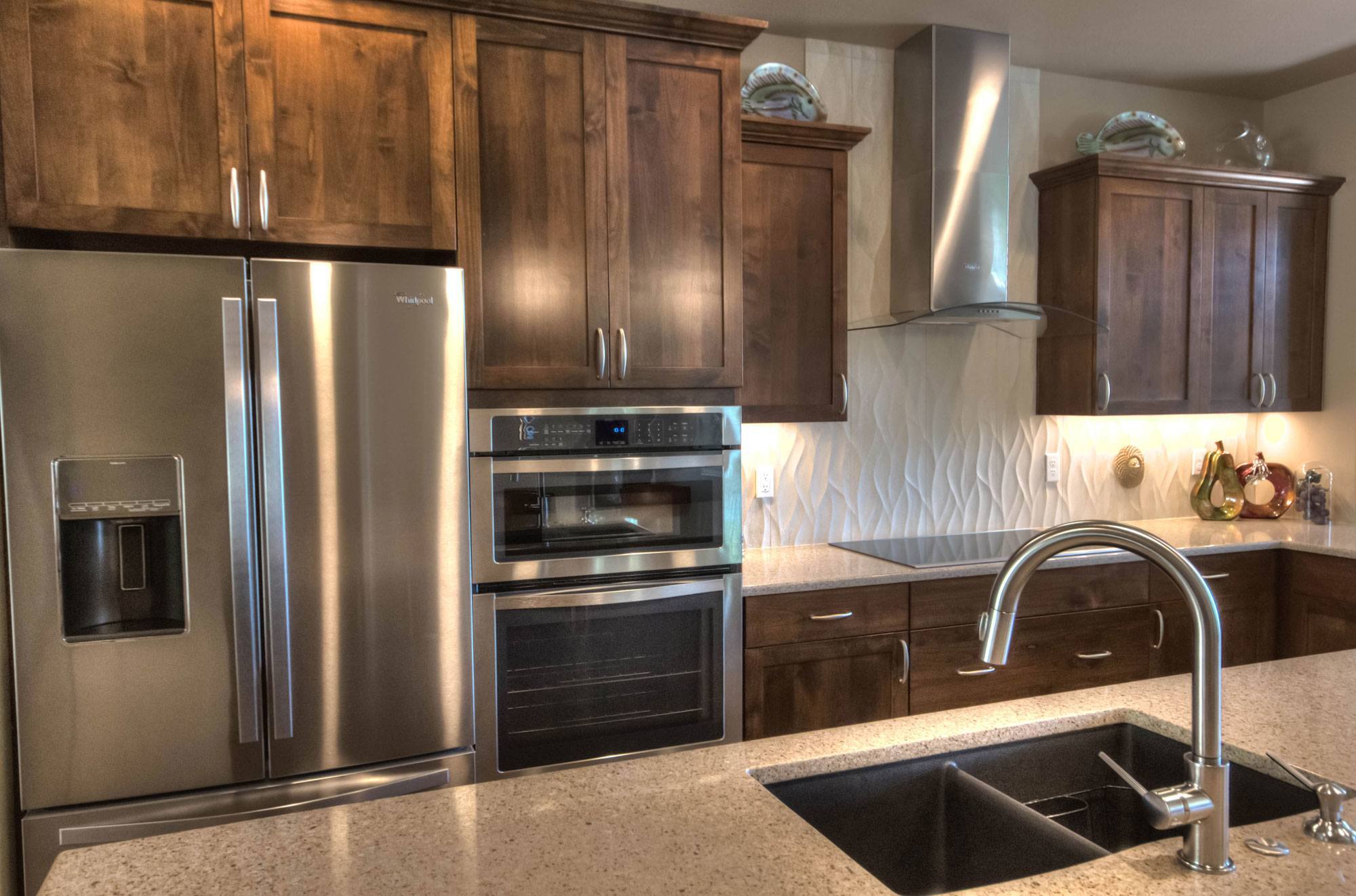 This modern and elegant one-story home was designed for the O’Dell’s. Built by BC Custom Homes, this beautiful empty nester home was recently awarded the 2014 Excellence Award for the best home in the $250-350,000 price range. The client had specific needs: low maintenance, central kitchen with open spaces, and lots of natural light, along with a working home studio and a warm modern feel. This home was chosen over all other entries from every major homebuilding/design team in Portland and we are so very proud of this team effort. Also a big thank you to the O’Dell Family for allowing us to do some of our best work yet on their retirement home. To see more homes or to contact Mark Stewart, visit markstewart.com.