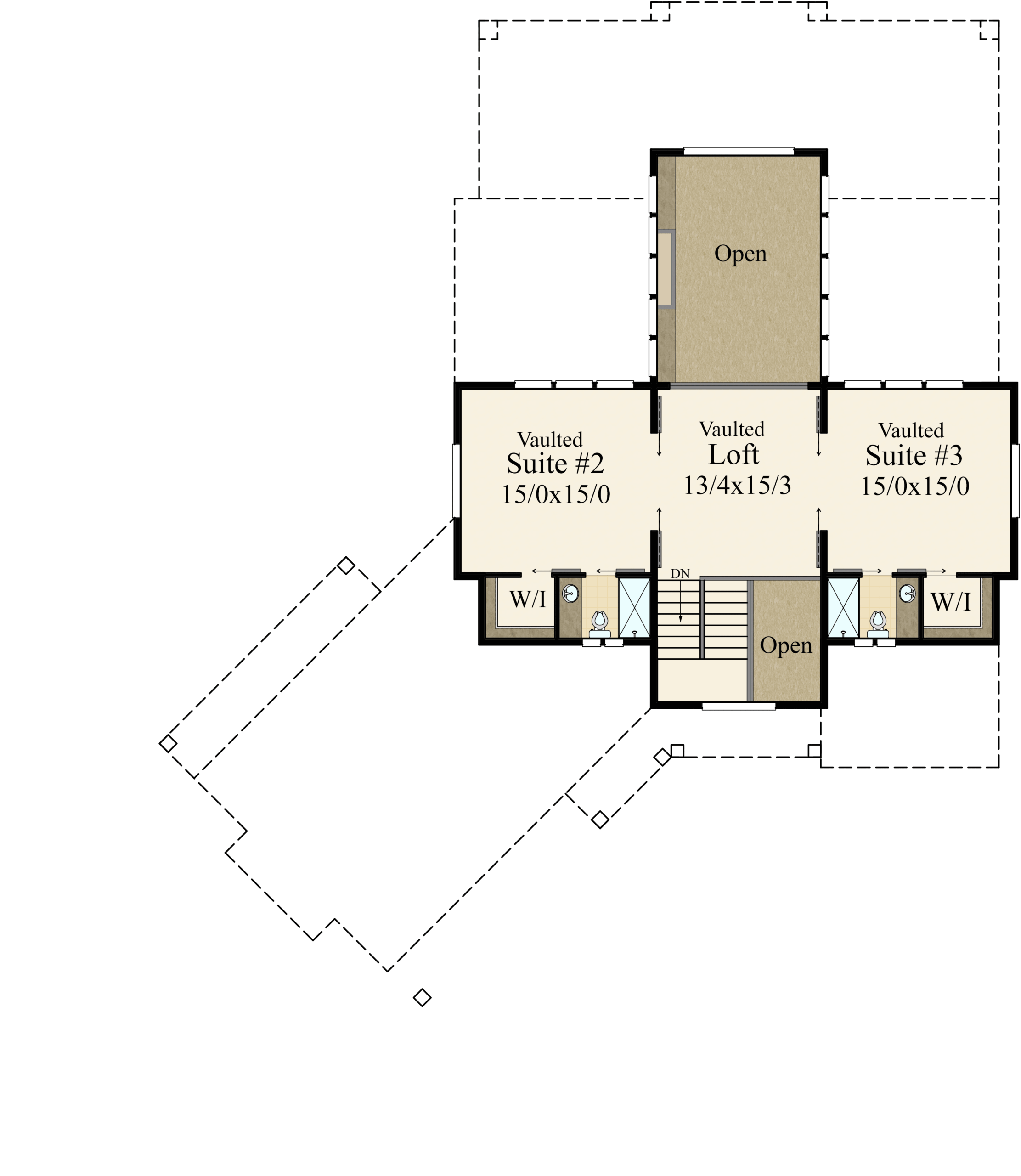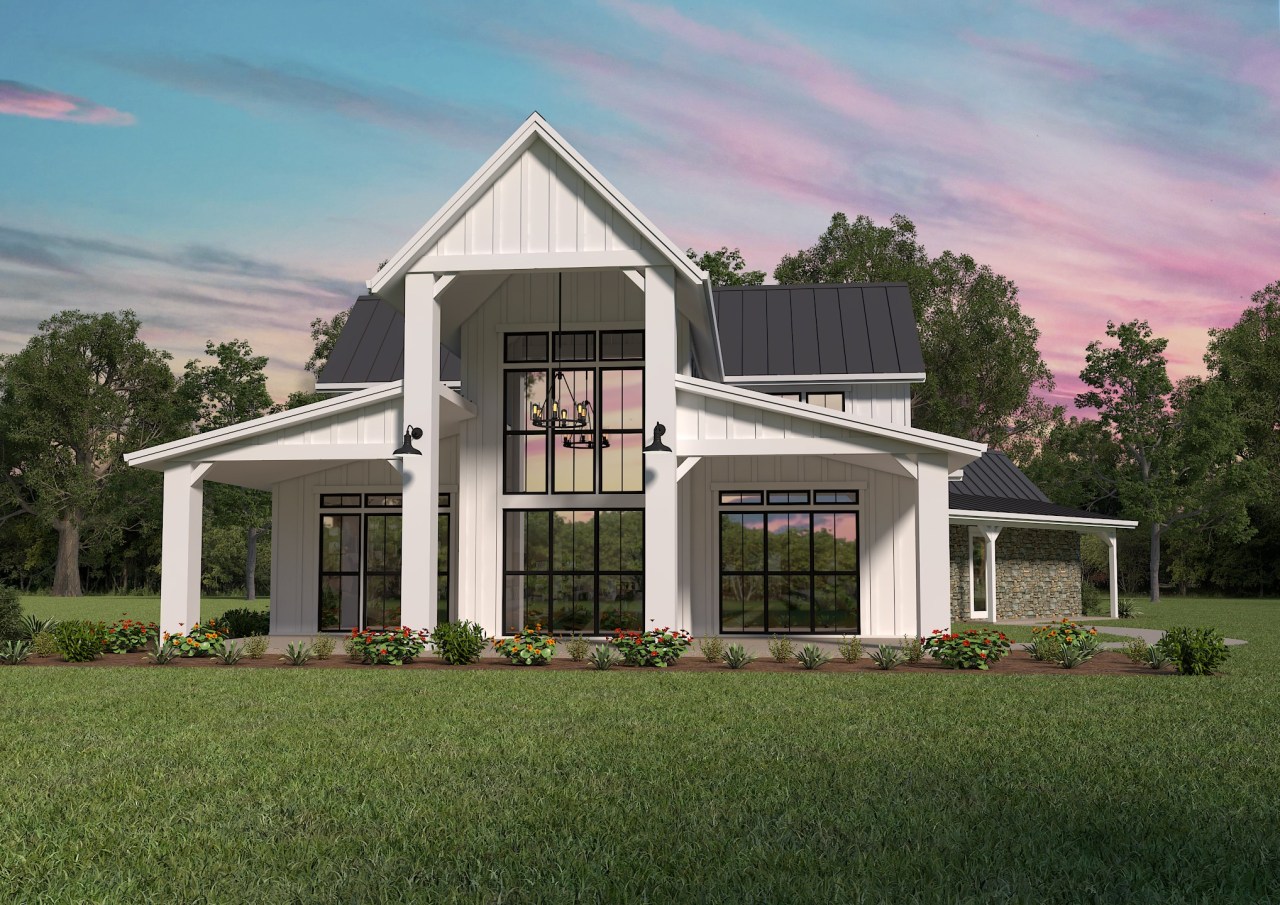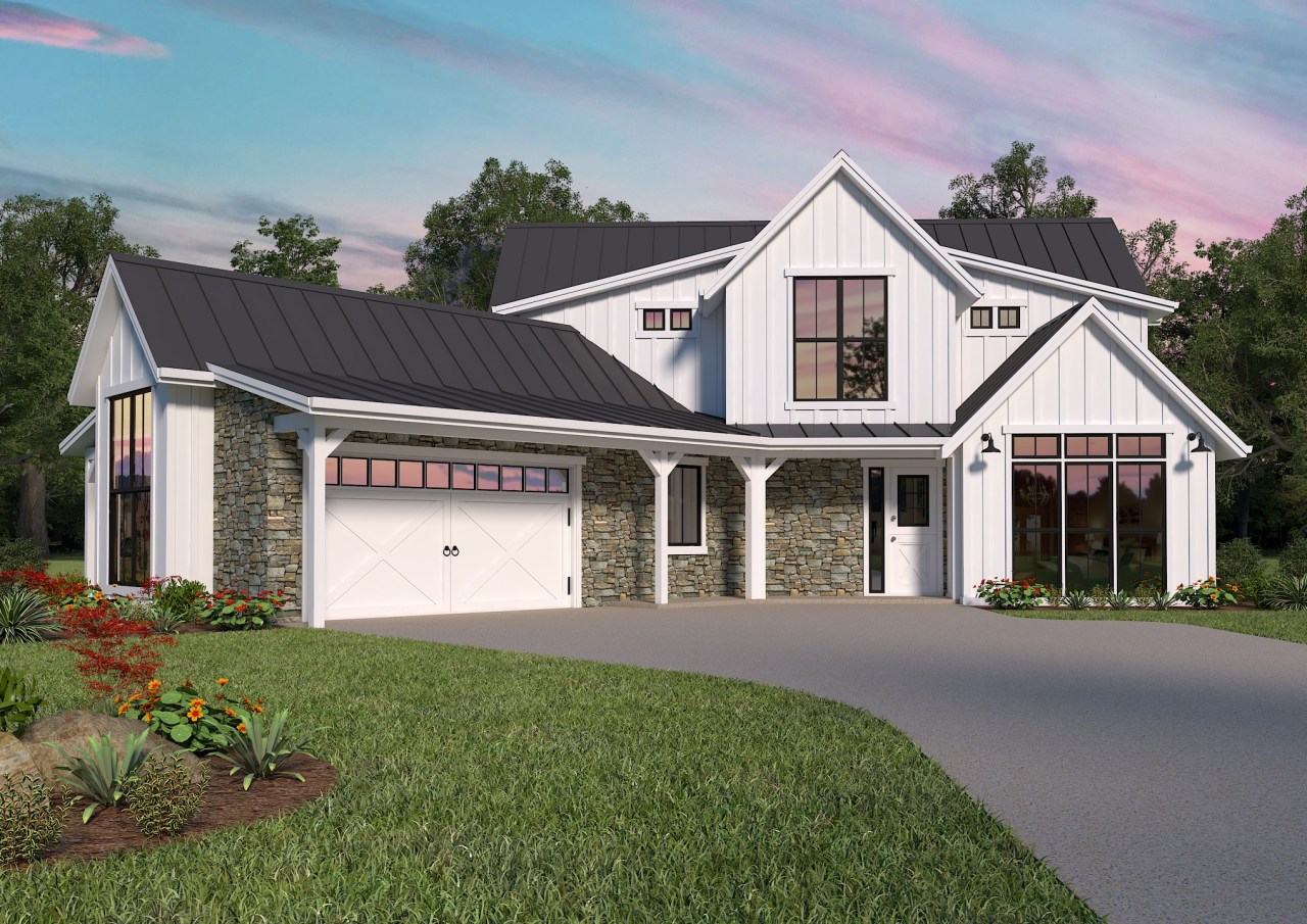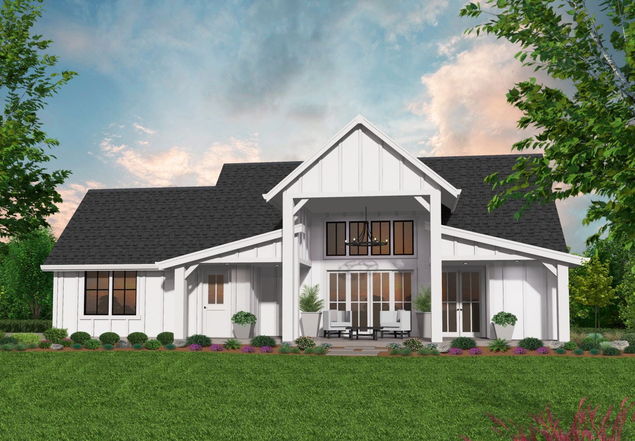 Modern Frontier has proven to be very popular as an empty nest home. The main floor leaves nothing to be desired. The master bedroom, utility room, and den are all on the main floor, while two fully featured suites occupy the upper floor. The core living arrangement is delightfully open and collects tons of natural light via the expansive view windows at the rear of the home. Entertaining is a snap with the sprawling covered outdoor living area (with optional outdoor kitchen/food prep space). The upstairs bedrooms are private, separated by the vaulted loft, and both include full bathrooms and walk in closets. These bedrooms, as well as the master, also benefit from the large, rear facing window arrangement. The master suite itself leaves nothing to be desired with its vaulted ceiling, massive walk in closet, and fully featured bathroom. Complete with a classy and timeless farmhouse exterior, this is an excellent option for those looking for a large empty nest.