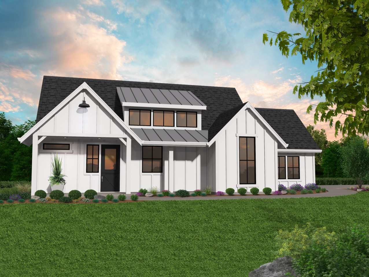 What we call traditional empty nest house plans typically have a few key things in common. These homes usually will have the master bedroom on the main floor, allowing homeowners to have an extra floor but not necessarily have to worry about it. They can live in a more or less convertible one story home. These homes will often two guest bedrooms, which make sure when the kids come back to visit that there’s always space. Traditional empty nest homes will frequently have a den so that you can work from home with ease. Living spaces will often include a bonus room upstairs and a great room on the main floor, an excellent option for those that like to entertain. Below, we’ll take a look at Modern Frontier, Sting X-16 A, and Adirondack, three great examples of a traditional empty nest style home.