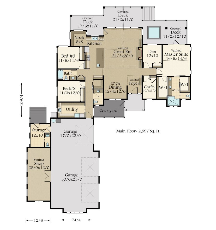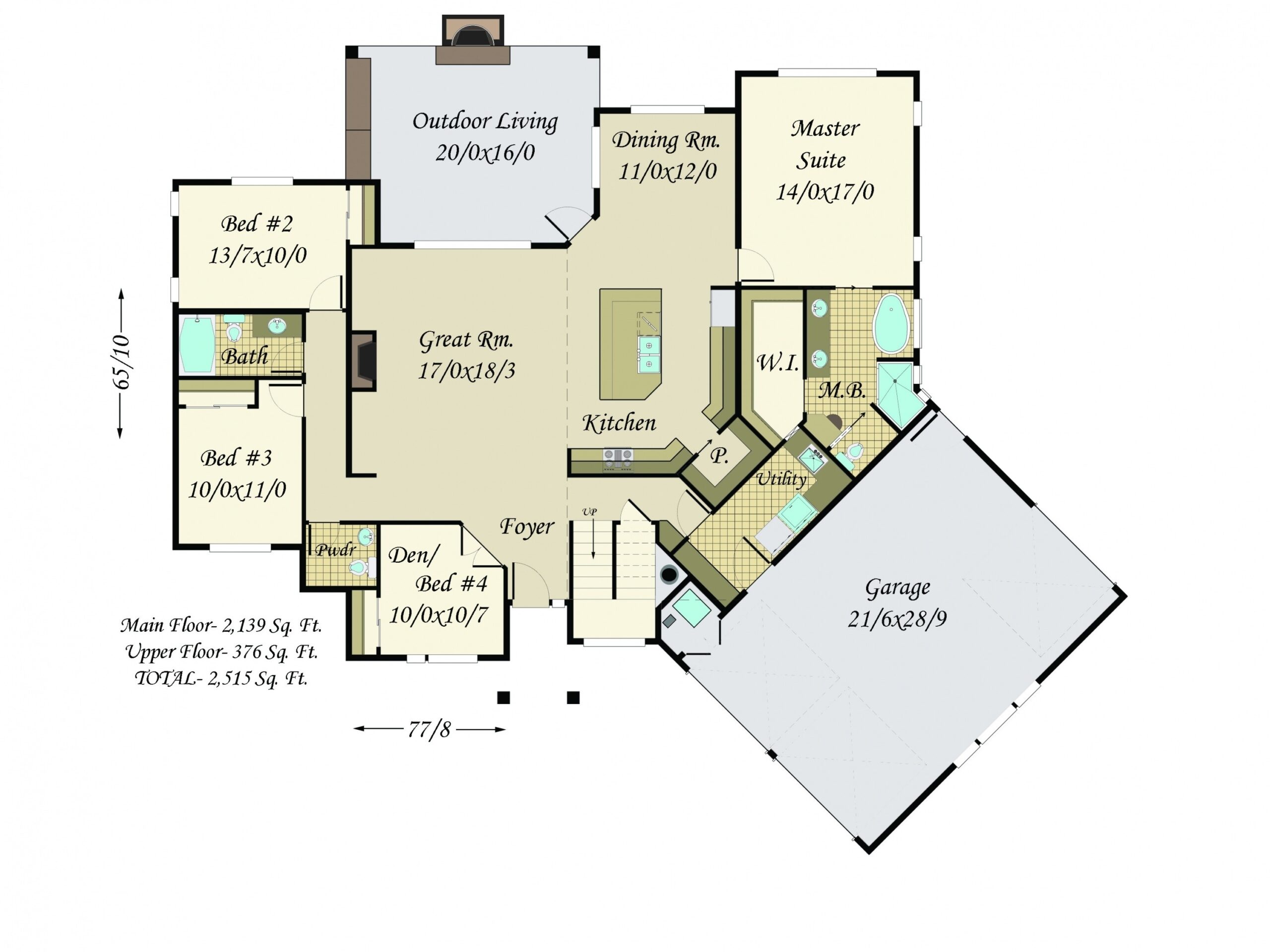 This a sterling example of what can be had with a single story home. As an empty nest home, it is still easily maintained thanks to the open floor plan. All bedrooms and additional spaces are easily accessed via the central living space. The right half of the home is dedicated to the master suite and complimentary spaces. A den and craft room are adjacent to the master suite, making the home live more compact than many other homes in this size range. As with Sting, there are additional guest bedrooms on the opposite side of the home, allowing privacy for homeowner and guests. An extraordinary outdoor living space turns this home into a relaxing paradise, with a spa located just outside the master bedroom.