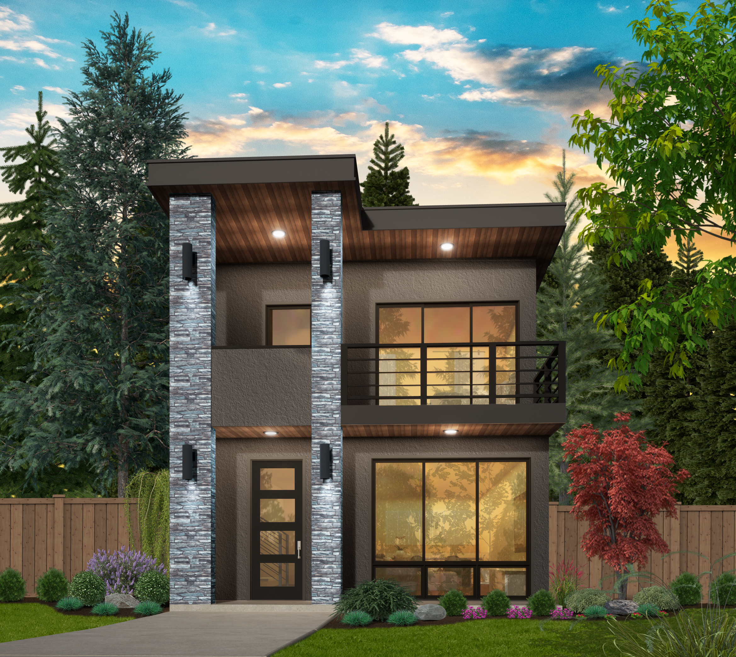 Organic Modern 2 story Skinny House Plan MM-1409 ...